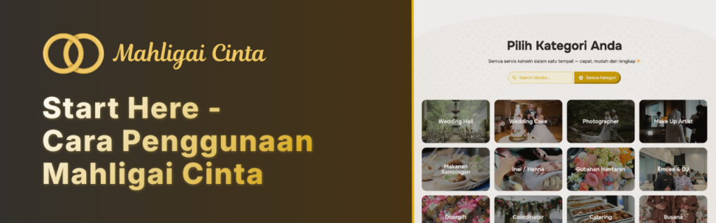 Semua di dalam #1 Platform. Lengkap semua yang anda perlukan. Tidak perlu bersusah payah mencari servis perkahwinan di merata tempat.